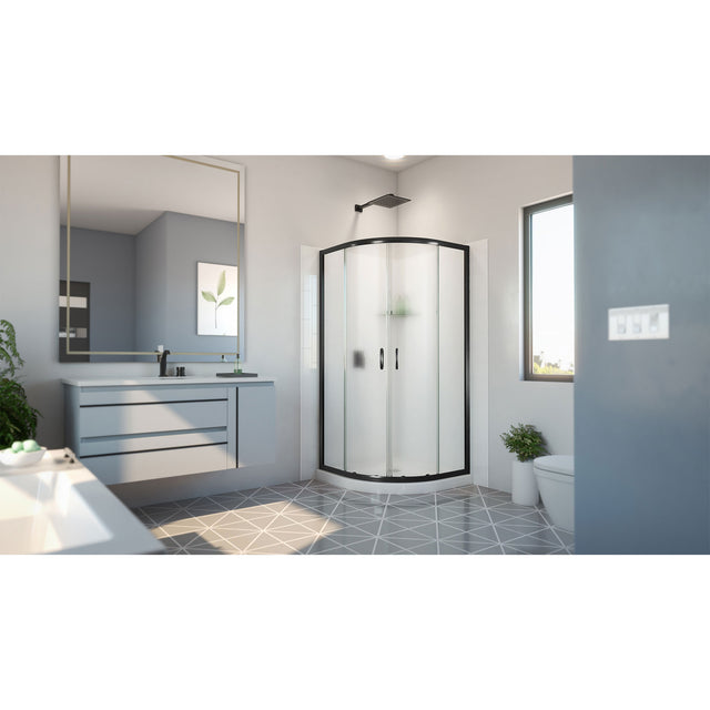 DreamLine Prime 36 in. x 36 in. x 78 3/4 in. H Shower Enclosure, Base, and White Wall Kit in Satin Black and Frosted Glass