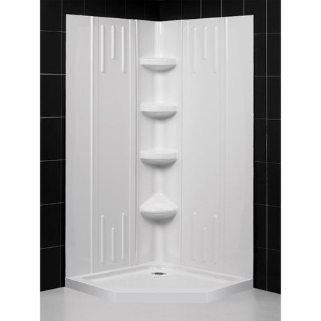 Sale price $26999 Regular price $34206UnavailableIn stock online (842 Units)DreamLine 36 in. x 36 in. x 76 3/4 in. H Neo-Angle Shower Base and QWALL-4 Ac...