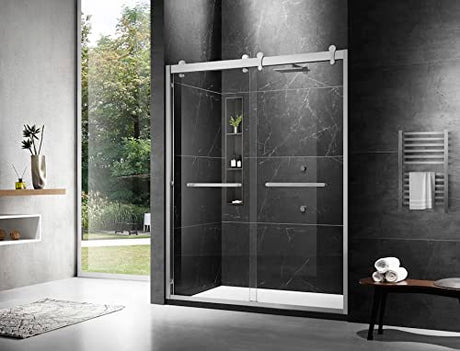 Framed Double Sliding Shower Door, 56”-60” ×76”, 5/16”(8mm) Clear Tempered Gl...