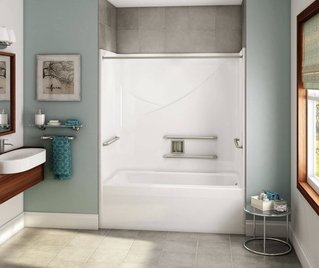 MAAX 106058-000-002-100 OPTS-6032 - ADA Grab Bars AcrylX Alcove Left-Hand Drain One-Piece Tub Shower in White