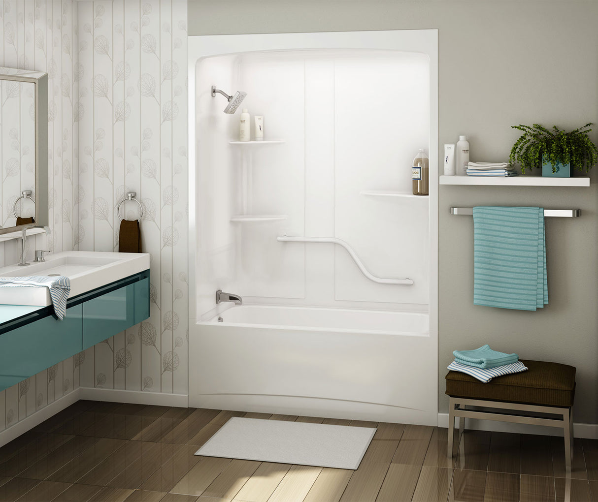 MAAX 107000-R-097-001 Allia TSR-6032 Acrylic Alcove Right-Hand Drain One-Piece Combined Whirlpool & Aeroeffect Tub Shower in White