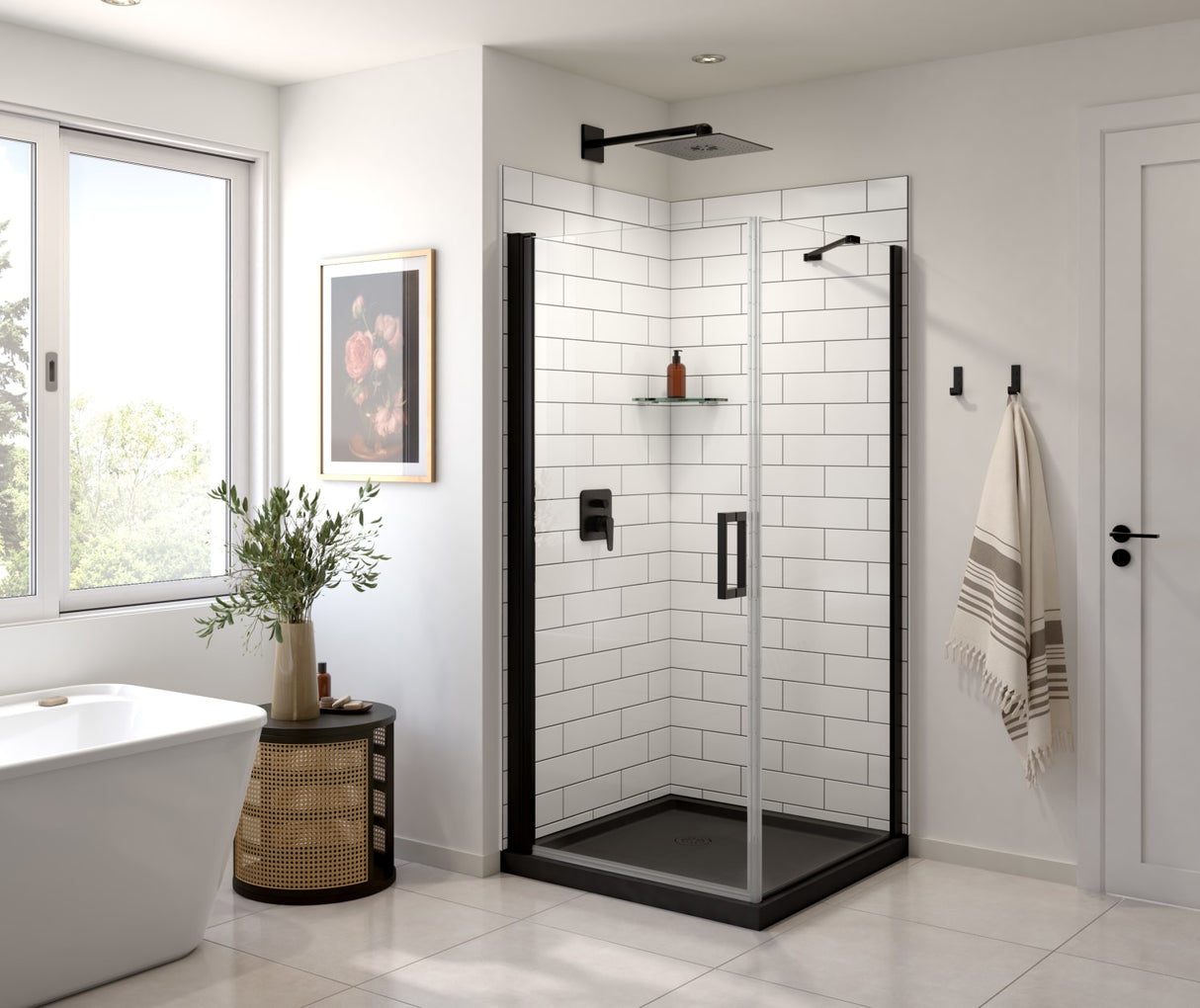 MAAX 135230-900-340-101 Manhattan Square 36 x 36 x 72 in. 6mm Pivot Shower Door for Corner Installation with Clear glass & Square Handle in Matte Black