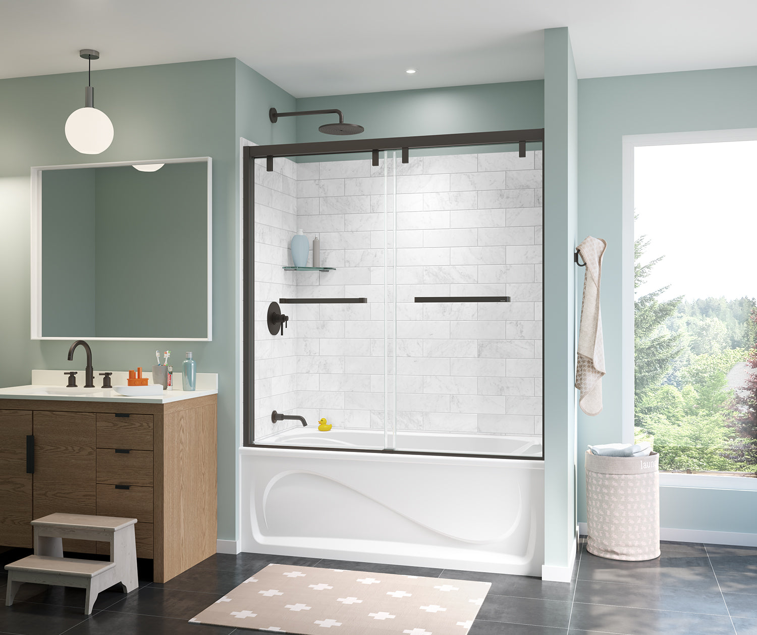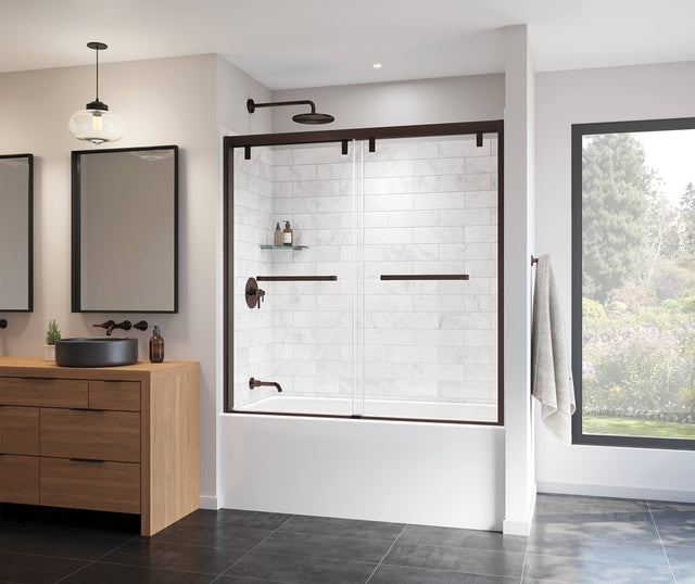 MAAX 135320-900-173-000 Uptown 56-59 x 58 in. 8 mm Bypass Tub Door for Alcove Installation with Clear glass in Dark Bronze