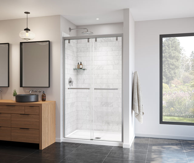 MAAX 135321-900-084-000 Uptown 44-47 x 76 in. 8 mm Bypass Shower Door for Alcove Installation with Clear glass in Chrome