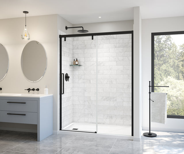 MAAX 135324-900-340-000 Uptown 56-59 x 76 in. 8 mm Sliding Shower Door for Alcove Installation with Clear glass in Matte Black