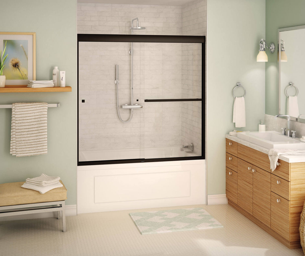MAAX 135670-900-172-000 Aura SC 55-59 in. x 57 in. 8 mm Bypass Tub Door for Alcove Installation with Clear glass in Dark Bronze