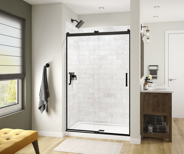 MAAX 135690-900-340-000 Revelation Square 44-47 x 70 ½-73 in. 6 mm Bypass Shower Door for Alcove Installation with Clear glass in Matte Black