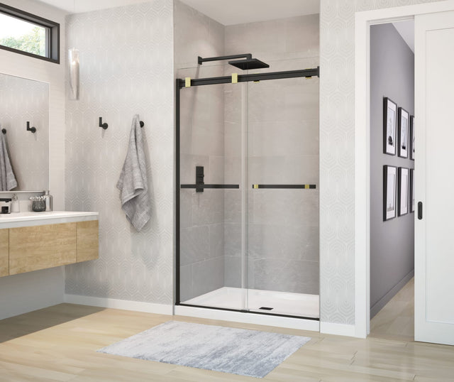 MAAX 136272-900-380-000 Duel 56-58 ½ x 70 ½-74 in. 8 mm Bypass Shower Door for Alcove Installation with Clear glass in Matte Black & Brushed Gold