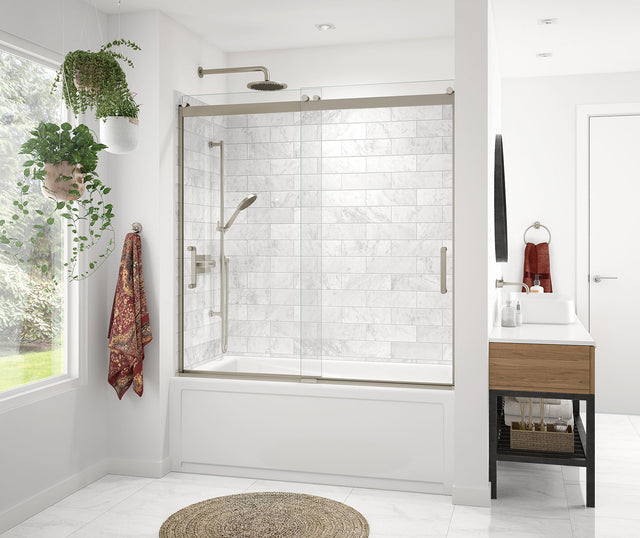 MAAX 136692-900-305-000 Revelation Round 56-59 in. x 56 ¾-59 ¼ in. 6 mm Bypass Tub Door for Alcove Installation with Clear glass in Brushed Nickel
