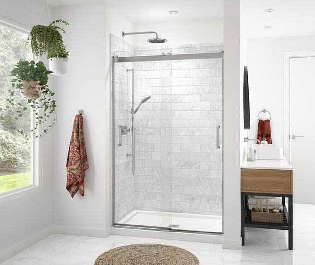 MAAX 136693-900-084-000 Revelation Round 44-47 x 70 ½-73 in. 8mm Bypass Shower Door for Alcove Installation with Clear glass in Chrome