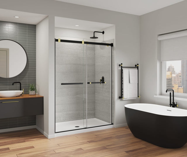 MAAX 136955-810-380-000 Duel Alto 56-59 X 78 in. 8mm Bypass Shower Door for Alcove Installation with GlassShield® glass in Matte Black & Brushed Gold