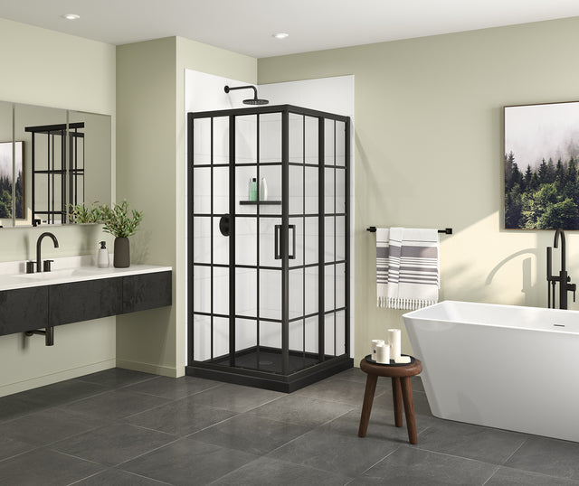 MAAX 137448-977-340-000 Radia Square 36 x 36 x 71 ½ in. 6 mm Sliding Shower Door for Corner Installation with French glass in Matte Black
