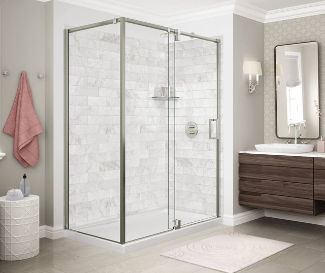 MAAX 137870-900-305-000 ModulR 60 x 32 x 78 in. 8mm Pivot Shower Door for Corner Installation with Clear glass in Brushed Nickel
