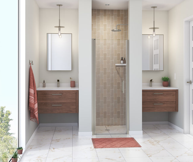 MAAX 138261-900-305-101 Manhattan 25-27 x 68 in. 6 mm Pivot Shower Door for Alcove Installation with Clear glass & Square Handle in Brushed Nickel