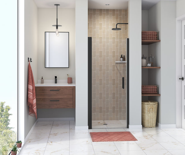 MAAX 138264-900-340-100 Manhattan 31-33 x 68 in. 6 mm Pivot Shower Door for Alcove Installation with Clear glass & Round Handle in Matte Black