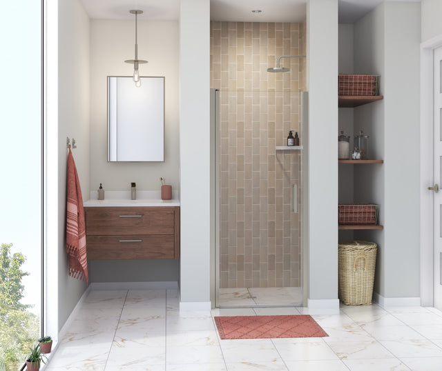 MAAX 138265-900-305-100 Manhattan 33-35 x 68 in. 6 mm Pivot Shower Door for Alcove Installation with Clear glass & Round Handle in Brushed Nickel