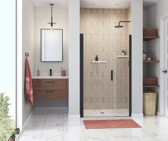 MAAX 138269-900-340-100 Manhattan 41-43 x 68 in. 6 mm Pivot Shower Door for Alcove Installation with Clear glass & Round Handle in Matte Black