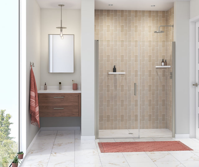 MAAX 138276-900-305-100 Manhattan 55-57 x 68 in. 6 mm Pivot Shower Door for Alcove Installation with Clear glass & Round Handle in Brushed Nickel