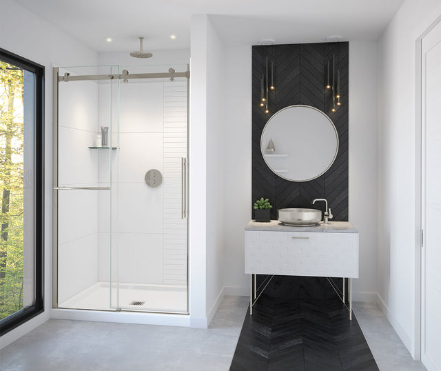 MAAX 138465-900-305-000 Vela 44 ½-47 x 78 ¾ in. 8mm Sliding Shower Door with Towel Bar for Alcove Installation with Clear glass in Brushed Nickel