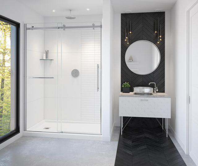 MAAX 138475-900-084-000 Vela 56 ½-59 x 78 ¾ in. 8mm Sliding Shower Door with Towel Bar for Alcove Installation with Clear glass in Chrome