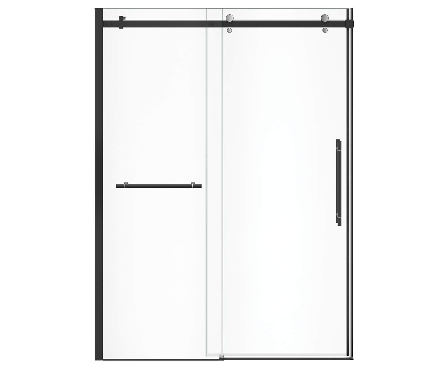 MAAX 138475-900-360-000 Vela 56 ½-59 x 78 ¾ in. 8mm Sliding Shower Door with Towel Bar for Alcove Installation with Clear glass in Matte Black and Chrome
