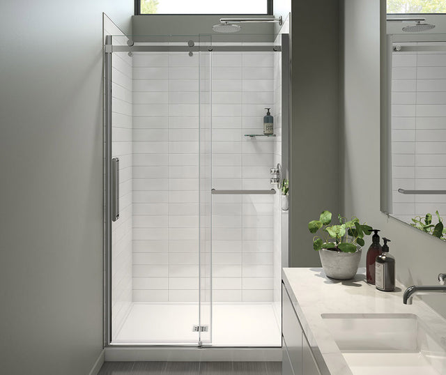 MAAX 138954-900-084-000 Halo Pro 44 ½-47 x 78 ¾ in. 8 mm Sliding Shower Door with Towel Bar for Alcove Installation with Clear glass in Chrome