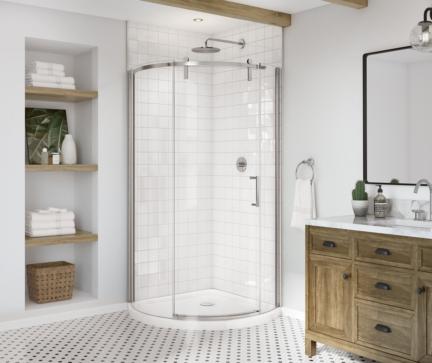 MAAX 139410-900-084-002 Outback Round 36 x 36 x 75 5/8 in. 8mm Sliding Shower Door for Corner Installation with Clear glass in Chrome