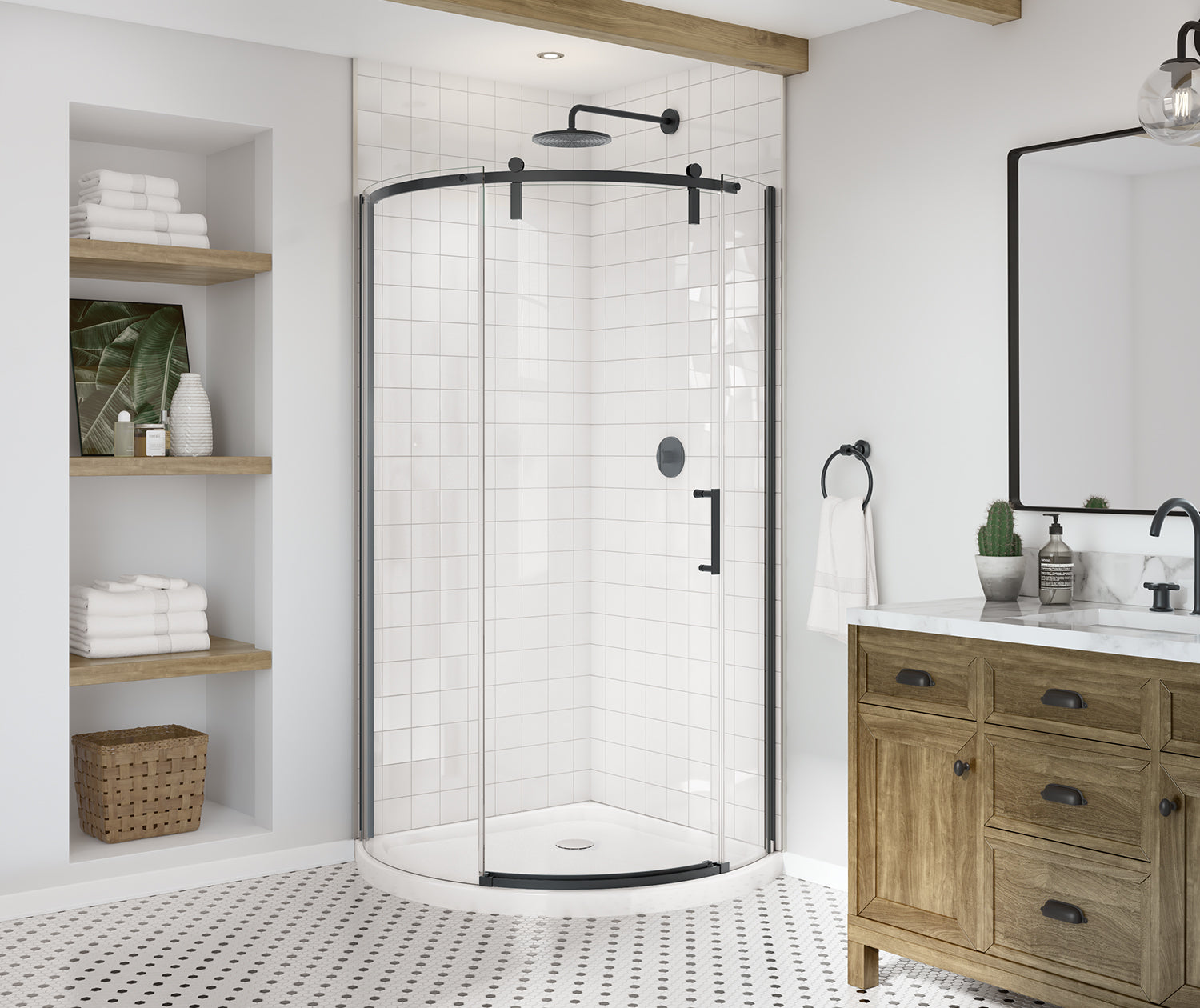 MAAX 139410-900-340-002 Outback Round 36 x 36 x 75 5/8 in. 8mm Sliding Shower Door for Corner Installation with Clear glass in Matte Black