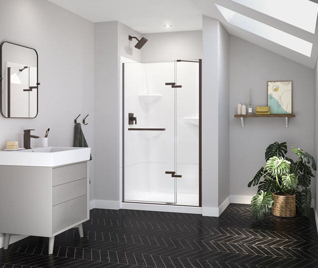 MAAX 139577-900-173-000 Reveal Sleek 71 41 ½-44 ½ x 71 ½ in. 8 mm Pivot Shower Door for Alcove Installation with Clear glass in Dark Bronze