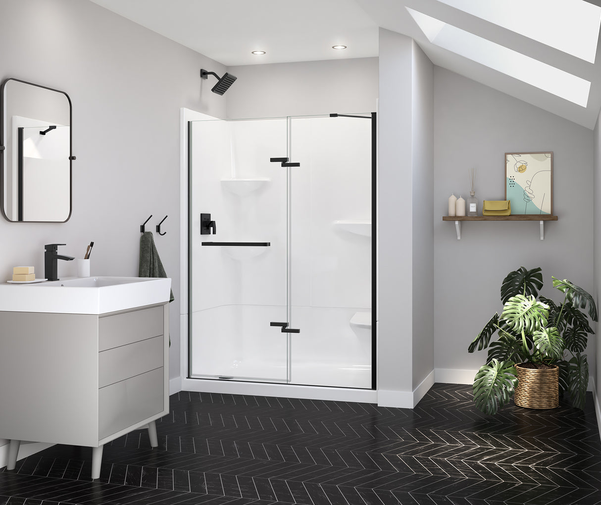MAAX 139579-900-340-000 Reveal Sleek 71 51 ½-54 ½ x 71 ½ in. 8mm Pivot Shower Door for Alcove Installation with Clear glass in Matte Black