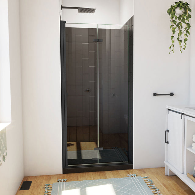 DreamLine Aqua-Q Fold 36 in. D x 36 in. W x 76 3/4 in. H Frameless Bi-Fold Shower Door in Satin Black with Black Acrylic Kit
