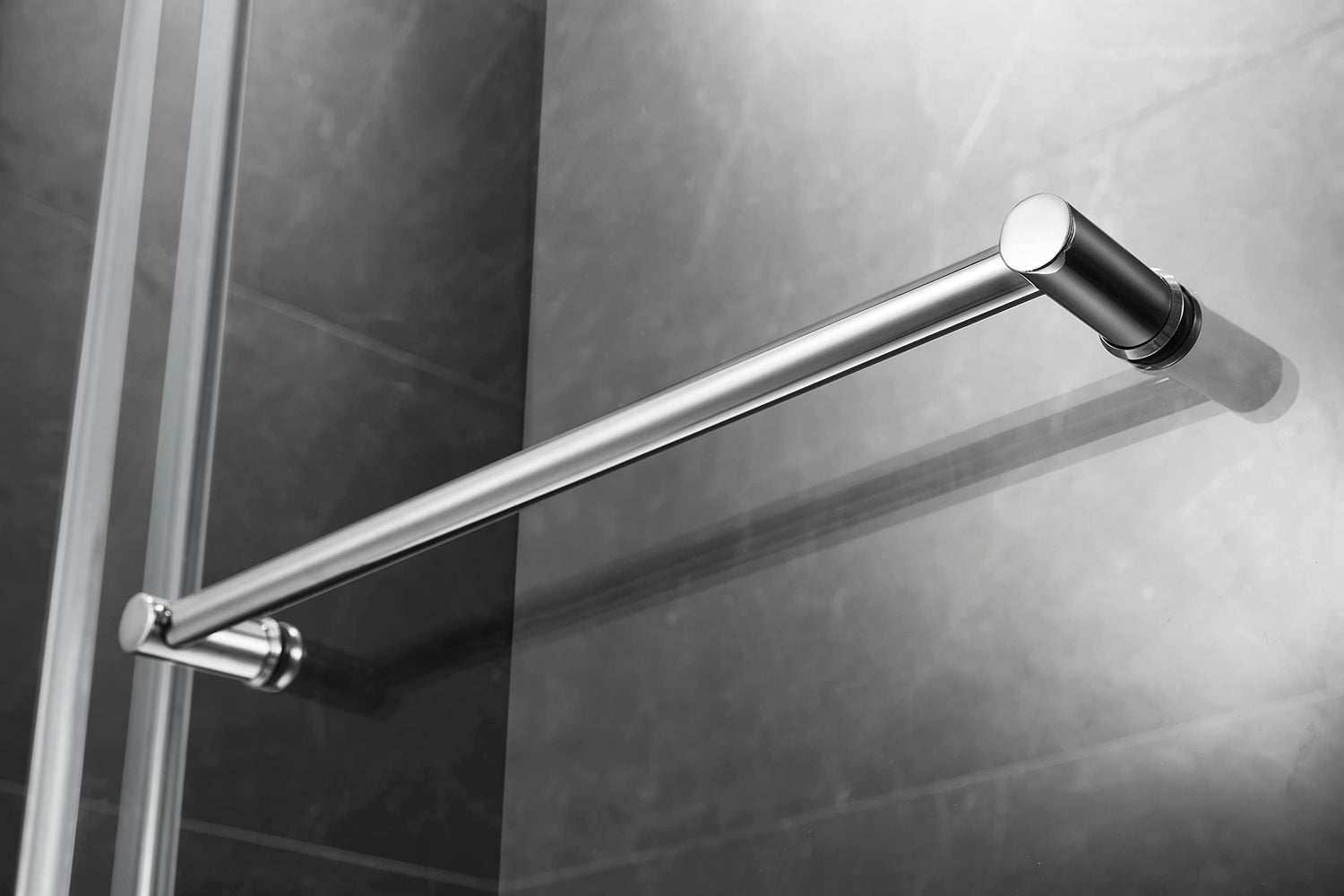 The MoSweet elegant shower door comes with a smooth single sliding door and quality wheels that passed 100,000 times testing in the laboratory. The Elegant comes with all mounting hardware, making installation simple and easy. The enclosure comes with special technology to prevent the glass from hitting the wall, and it has top rail supports that ensure wall anchoring and reinforce wall stability. A set of sophisticated 2-wheel roller systems allows easy and smooth sliding operation, MoSweet exclusive Crystal X Tech water, and stain-resistant glass coating provide superior protection from buildup and easy maintenance, and semi-Frameless design and door sliding keep the bathroom open and spacious