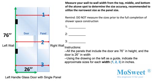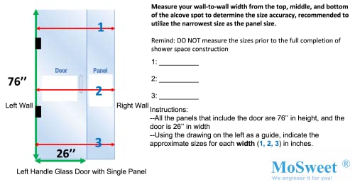 Genius Plus Frameless Shower Door Size fits for Width of 57' - 61'' * H76'' with a Side Panel in Matte Black Premium Hardware Finish, Low Iron Tempered Glass Included(59'') …