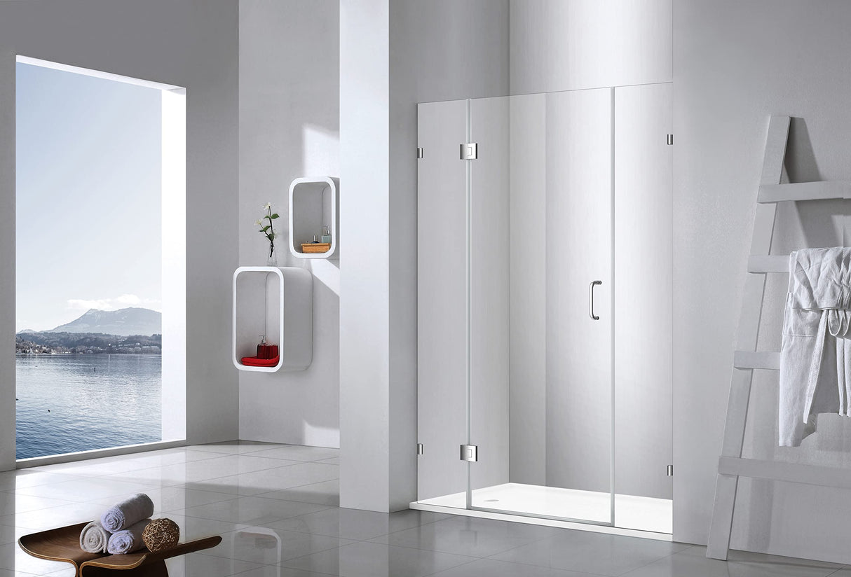 Genius Plus Frameless Shower Door Size fits for a Width of 57' - 61'' * H76'' with a Side Panel in Matte Black Premium Hardware Finish, Low Iron Tempered Glass Included(59'')