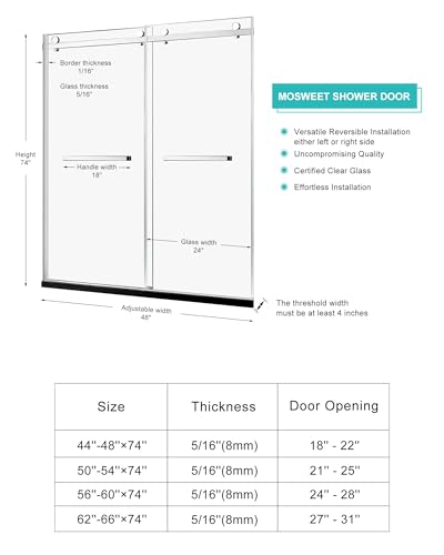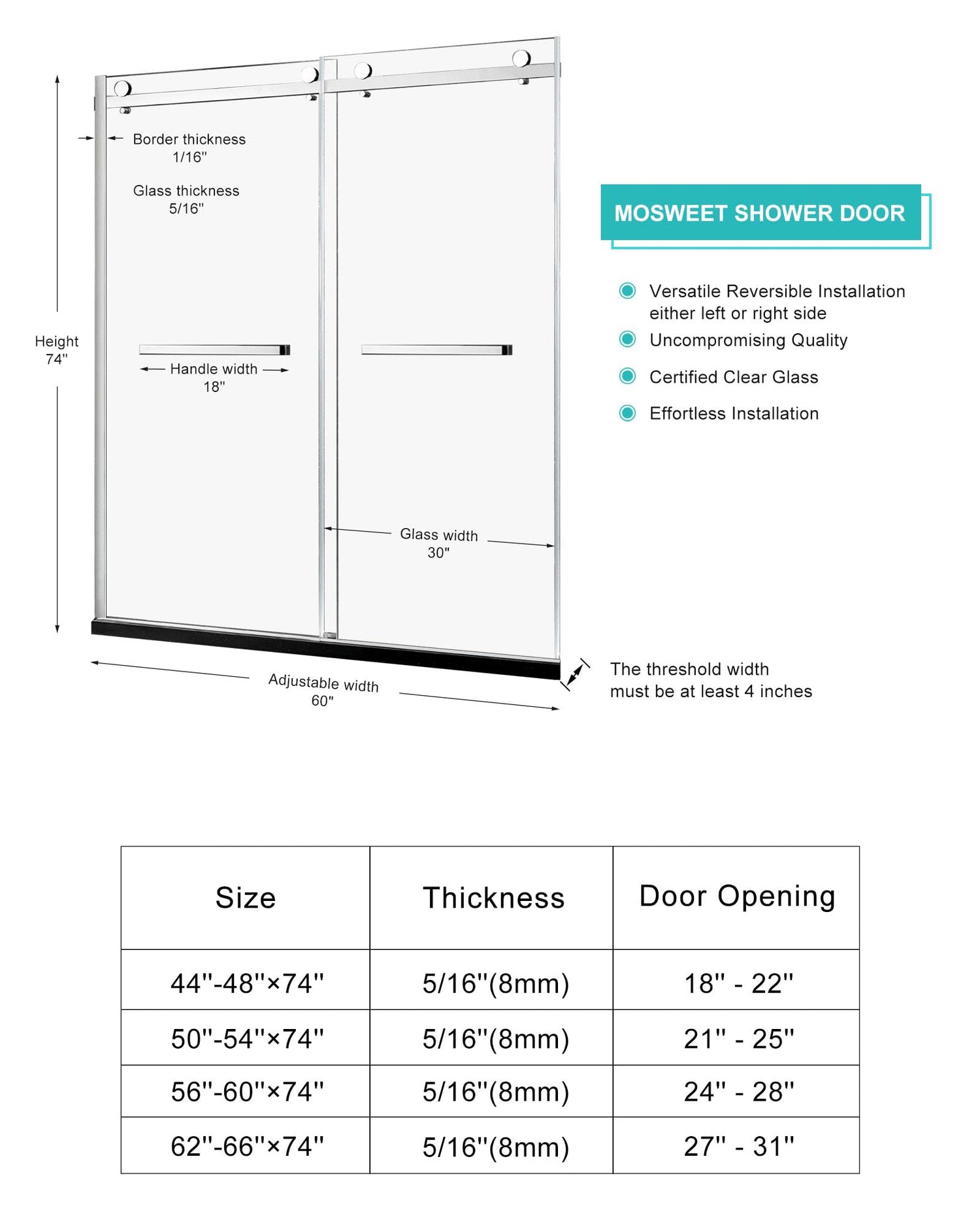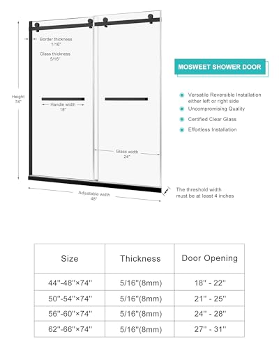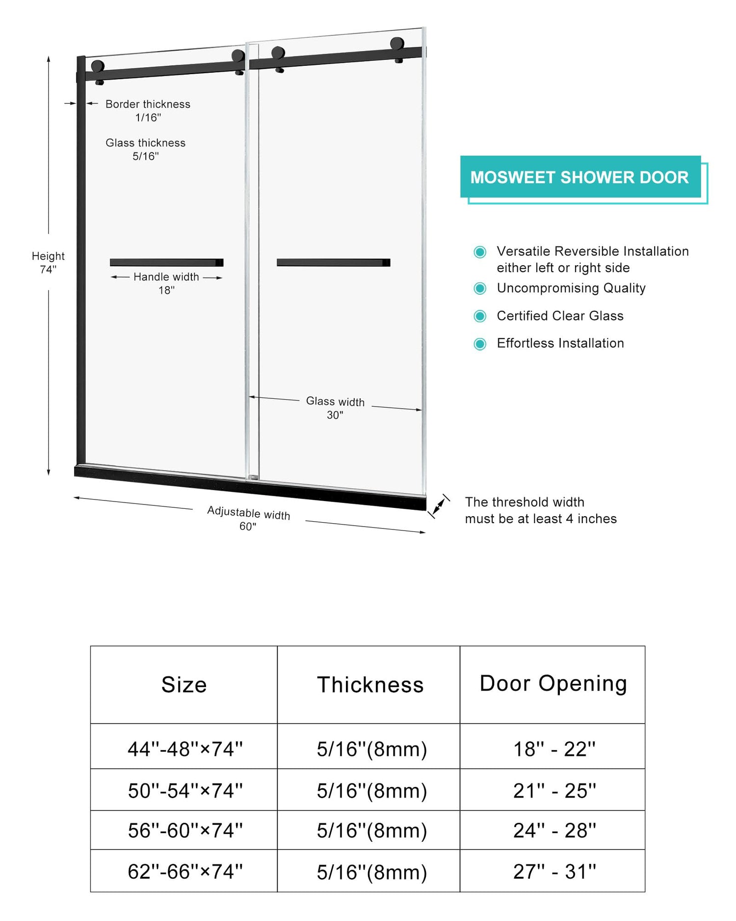 - Shower door is designed with high flexibility to accommodate various shower room sizes, this product supports cutting of up to 4''.