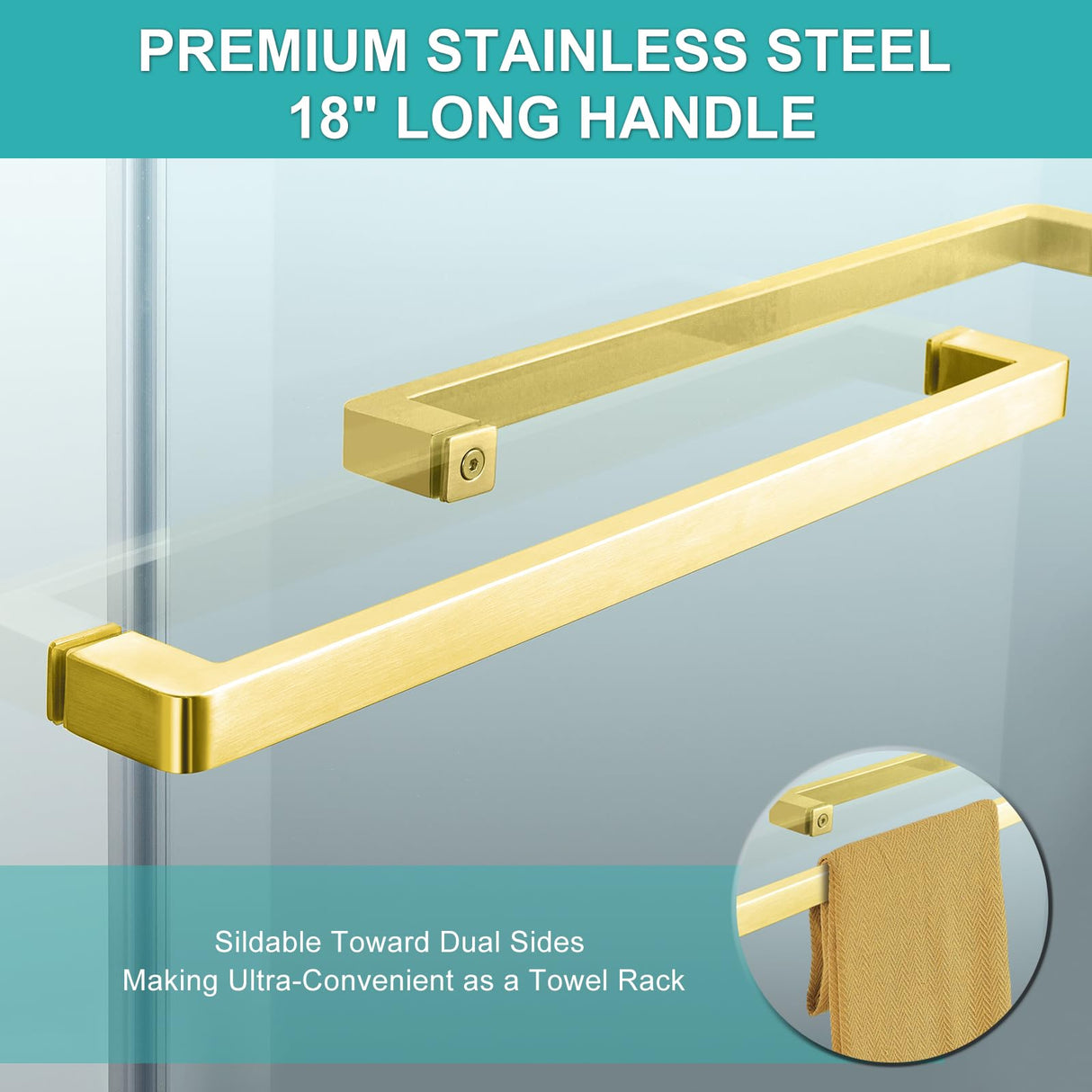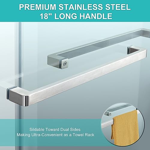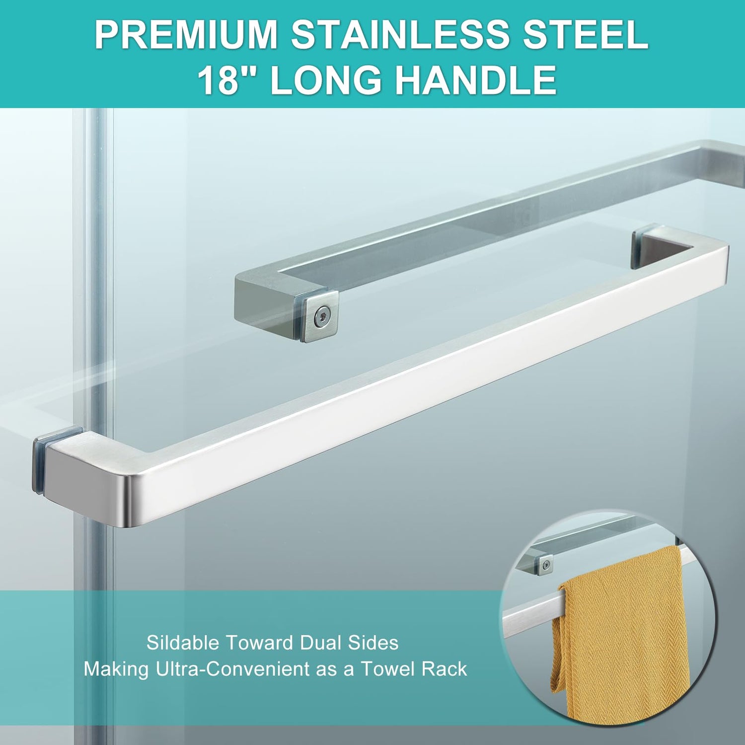 - This is a deluxe framed shower door that comes with bypass sliding or single sliding opening, stainless steel frame and premium 18" pull handle towel bar, and installation hardware. All premium clear tempered glass products fully complied with and achieve the tempered glass criteria of ANSI Z97.1-2015 and 16 CFR 1201 II standards.