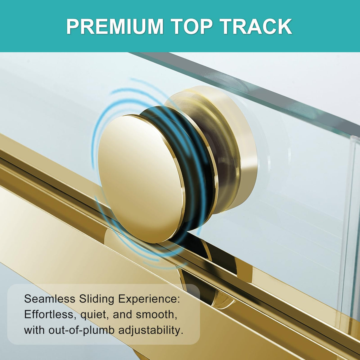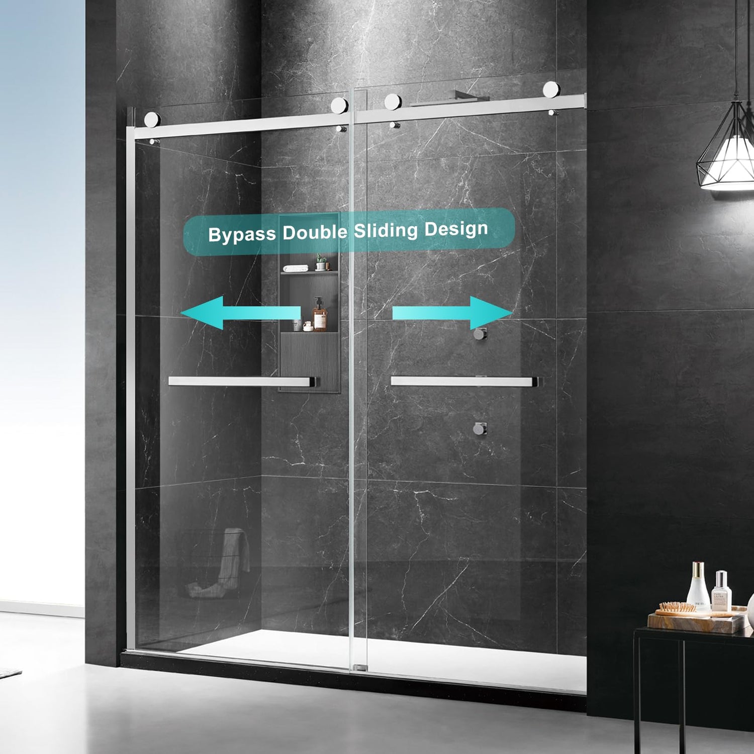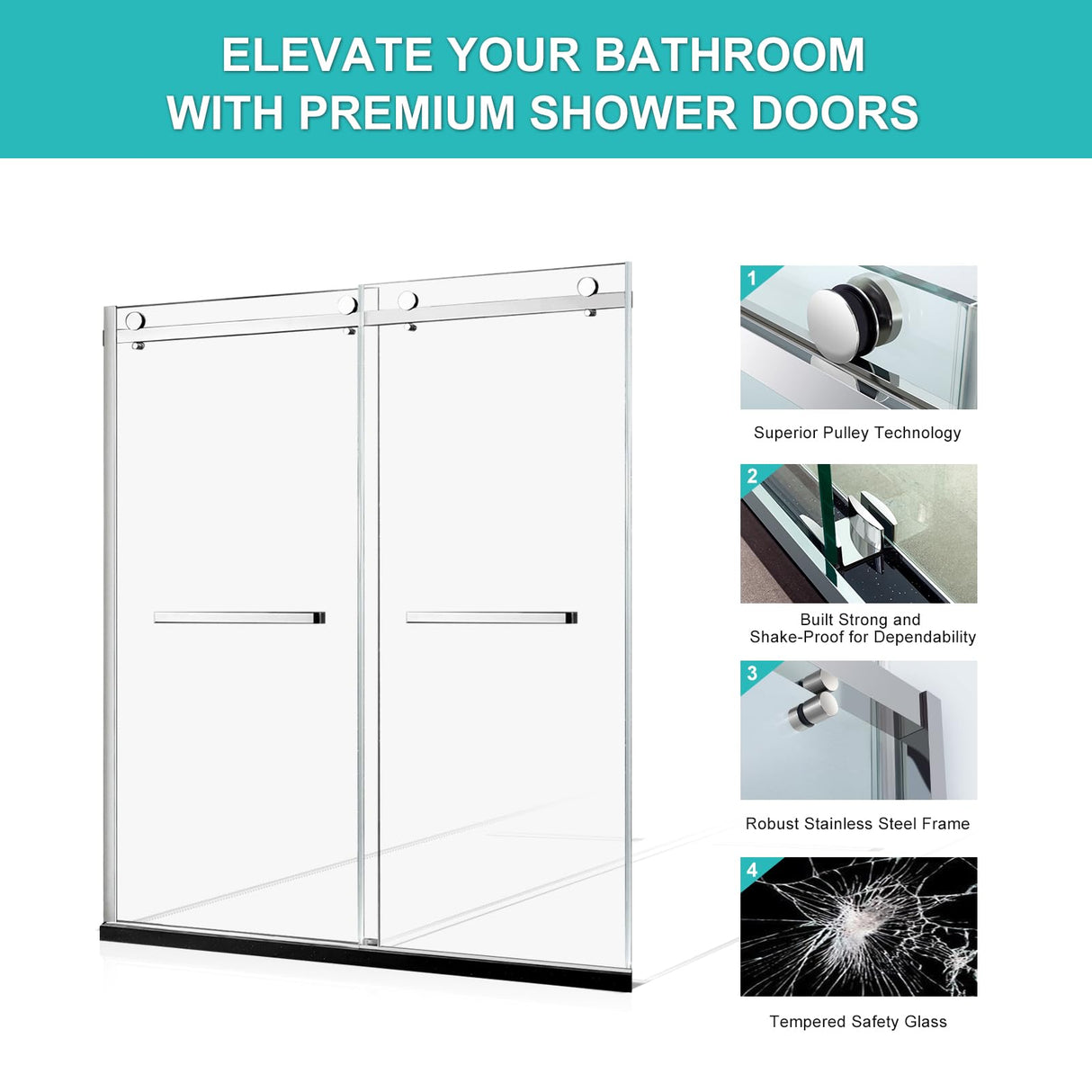 - Premium Materials: Tempered glass used in the door guarantees both safety and long-lasting durability. To further enhance its sturdiness, the top track of this 60'' double sliding shower door boasts a solid construction using thick and resilient stainless steel, preventing any risk of bending or warping. Moreover, every other hardware component is expertly fashioned from high-quality, rust-resistant stainless steel, ensuring unwavering strength and durability that you can confidently depend on.