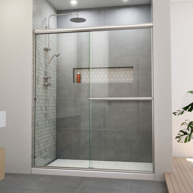 DreamLine Alliance Pro BG 56-60 in. W x 70 3/8 in. H Semi-Frameless Sliding Shower Door in Brushed Nickel and Clear Glass