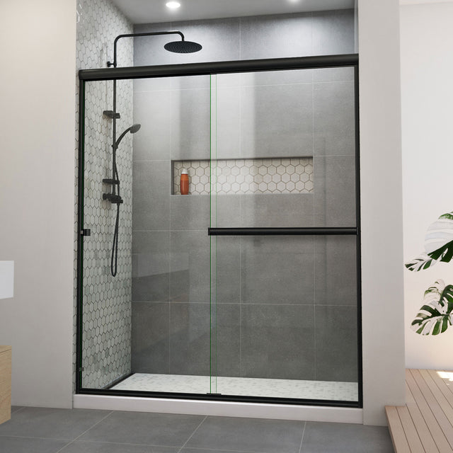 DreamLine Alliance Pro BG 56-60 in. W x 70 3/8 in. H Semi-Frameless Sliding Shower Door in Satin Black and Clear Glass