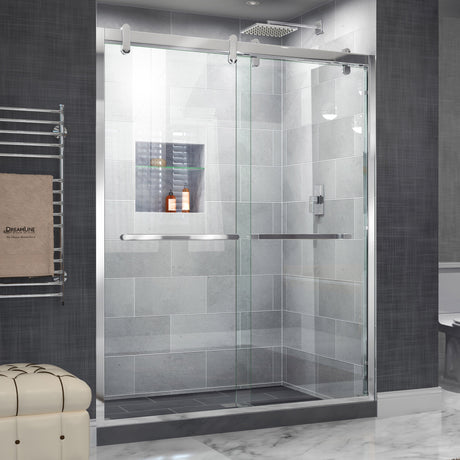 Sale price $75999 Regular price $1,27700UnavailableIn stock online (69 Units)DreamLine Charisma-X 56-60 in. W x 76 in. H Frameless Bypass Sliding Shower D...
