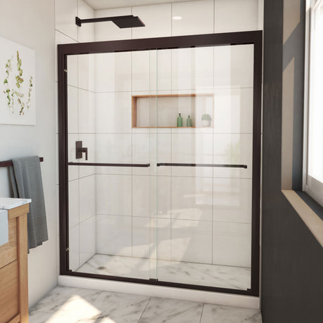 Sale price $1,32999 Regular price $2,17771UnavailableIn stock online (66 Units)DreamLine Encore 34 in. D x 60 in. W x 78 3/4 in. H Bypass Shower Door in Oil...