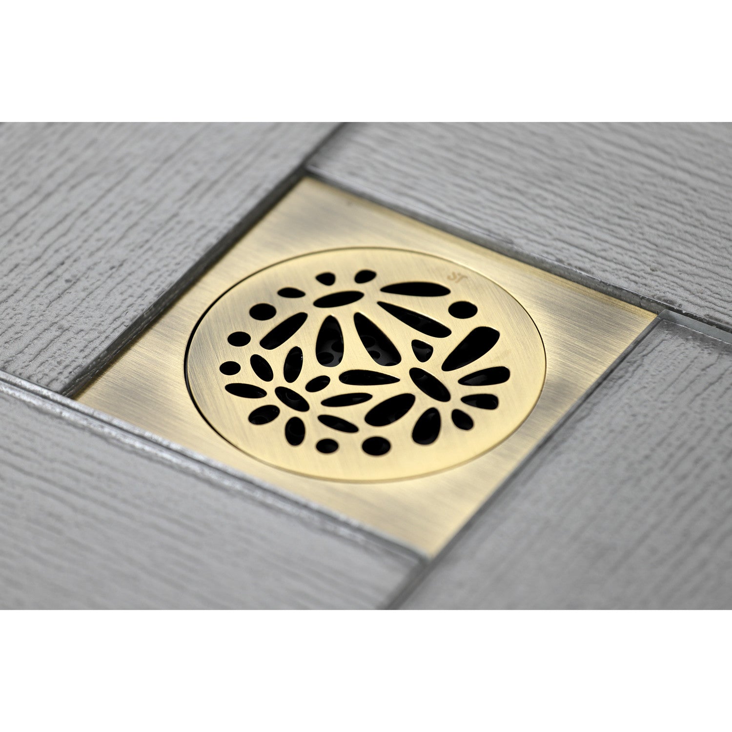 The Watercourse collection features an array of shower drains in multiple finishes. From simple, non-obtrusive grid-cut floor drains to ornate embossed floral patterns the Watercourse collection offers a range of selections. Watercourse drains install a variety of ways and fit a range of both square and circular drain openings. Please see each drain for its detailed specifications and compatibility. The Floral drain flange in the Watercourse collection fits a 4" x 4" square and features a cheerful daisy cutout pattern circular hair catcher to prevent foreign objects entering your drain. The design comes in Chrome, Polished Brass, Antique Brass, Oil Rubbed Bronze, Polished Nickel, Brushed Brass, Brushed Nickel and Matte Black to match nearly any fixture and any design.