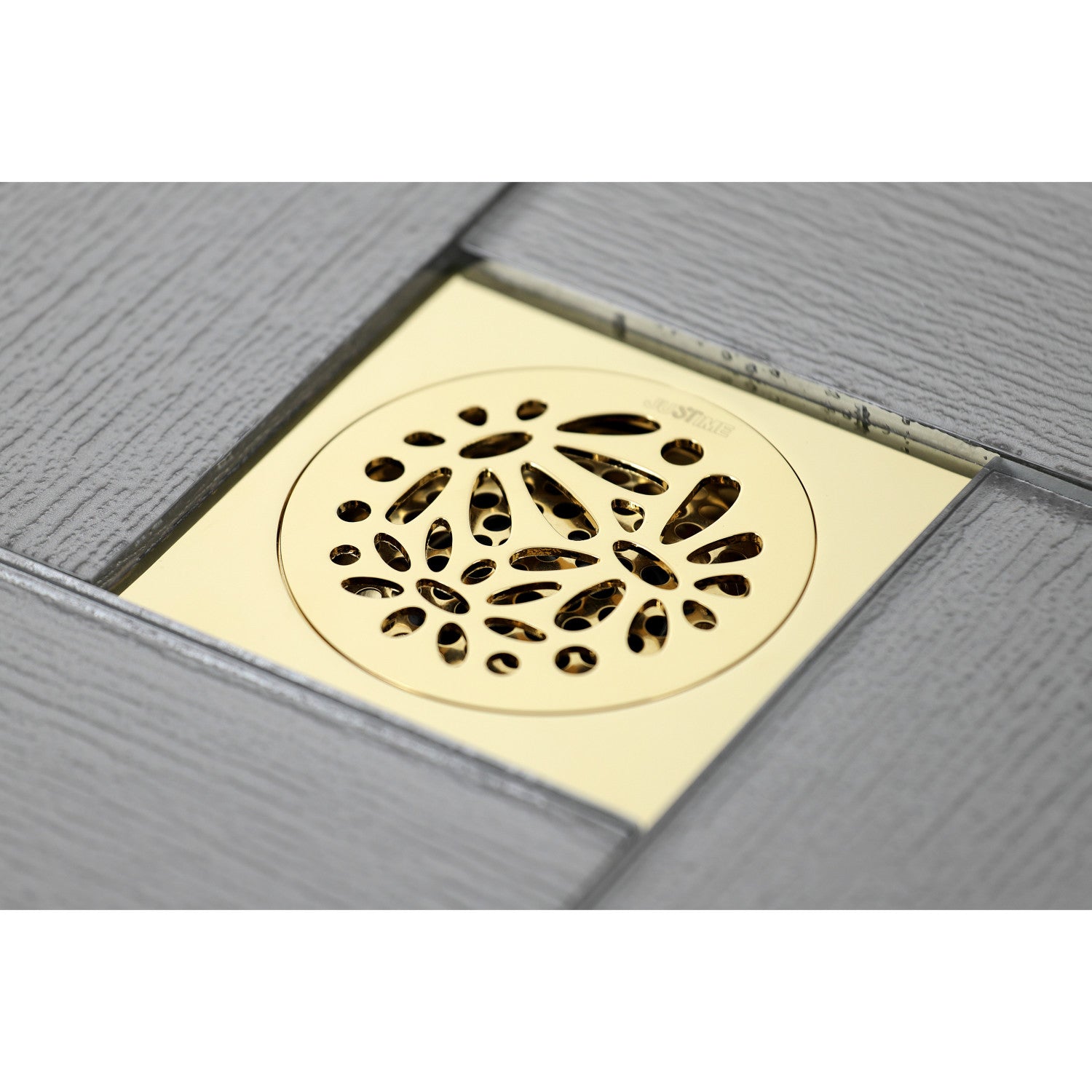 The Watercourse collection features an array of shower drains in multiple finishes. From simple, non-obtrusive grid-cut floor drains to ornate embossed floral patterns the Watercourse collection offers a range of selections. Watercourse drains install a variety of ways and fit a range of both square and circular drain openings. Please see each drain for its detailed specifications and compatibility. The Floral drain flange in the Watercourse collection fits a 4" x 4" square and features a cheerful daisy cutout pattern circular hair catcher to prevent foreign objects entering your drain. The design comes in Chrome, Polished Brass, Antique Brass, Oil Rubbed Bronze, Polished Nickel, Brushed Brass, Brushed Nickel and Matte Black to match nearly any fixture and any design.