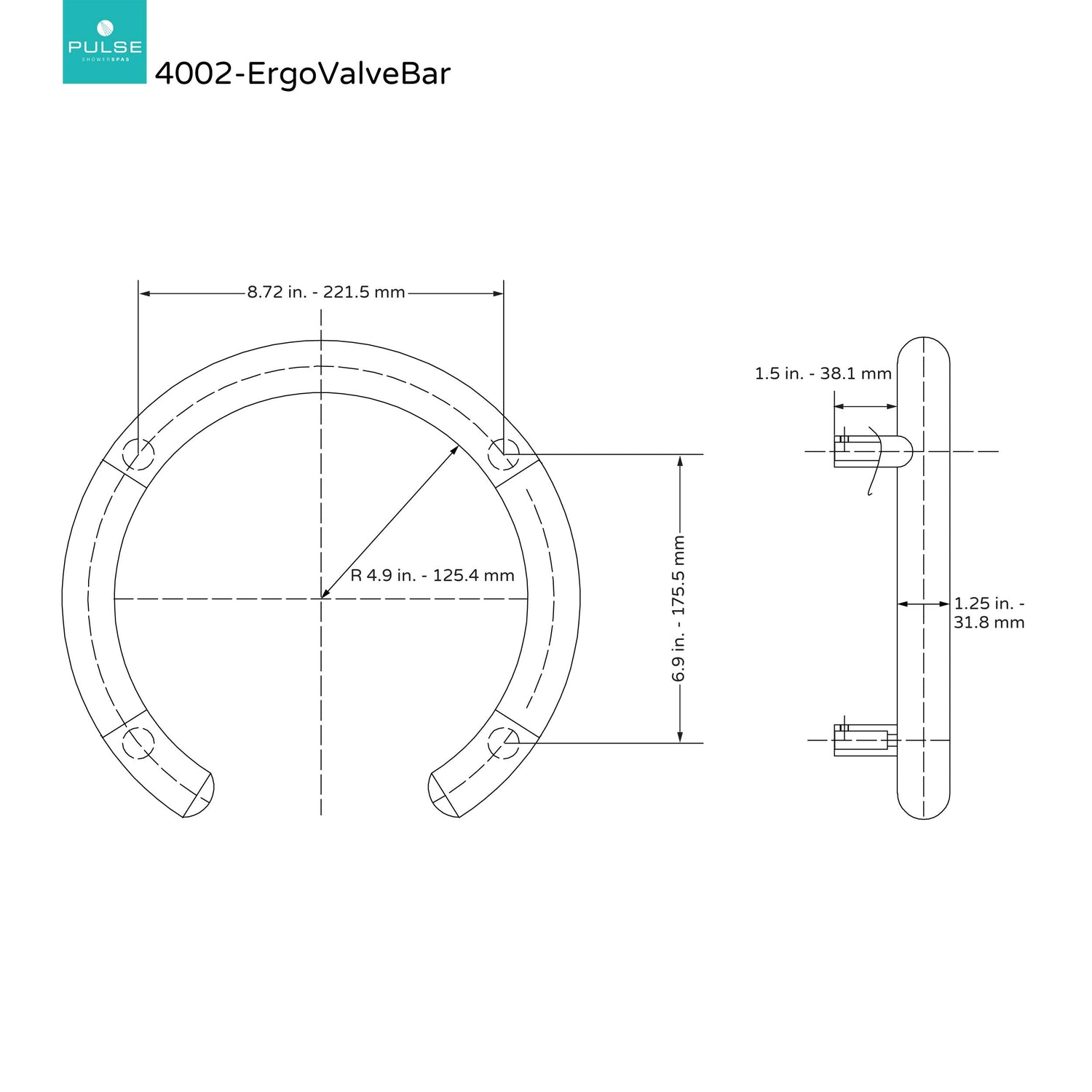 PULSE ShowerSpas 4002-MB ErgoValveBar, ADA Compliant Valve Grab Bar, Soft-Grip, Matte Black. The ErgoValveBar was designed to complement your shower while providing extra support, safety and comfort. Built to exceed ADA standards, the ErgoValveBar sits conveniently and unobtrusively around any standard shower mixing valve. The 1.25” diameter bar features a unique ergonomic soft-grip that provides a comfortable, safe grip placement. Constructed of high-quality 304 stainless steel for long-life and care-free function. Easy to install with included template, screws and anchors. Also available in Oil Rubbed Bronze, Polished and Brushed Stainless Steel finishes (sold separately). PULSE ShowerSpas "Make Every Day Feel Like A Spa Day!"