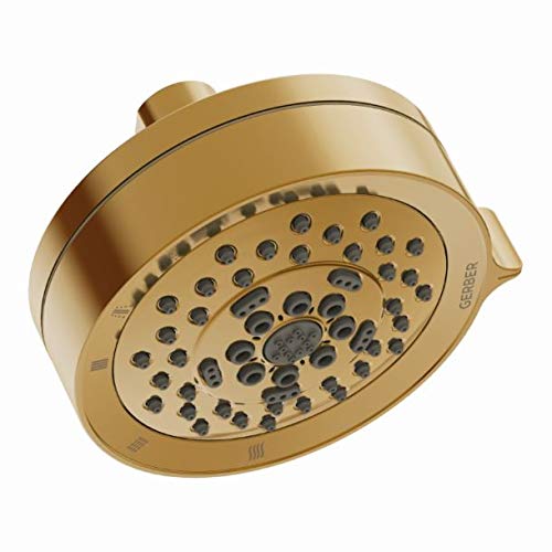 Upgrade your shower with a Danze efficient flow shower head, offering a steady stream, easy cleaning, and up to 20% savings in water use. Features 5 different spray settings. Matches Parma collection. Product Information Product Overview Flow Rate: 2.0gpm Max Flow Rate @ 80 psiMaterial/Material Construction: Brass Ball Joint with Polymer BodySpray/Stream Function: 5 Functions: Wide Aeration Centerjet Massage and Wide + CenterjetBrand: Gerber Features Dual Valve Technology: Features Dual Valve technology which minimizes water pressure loss as setting changesEasy Clean Nozzles: Features Easy Clean Soft-Touch NozzlesEasy-Glide Selector Ring: Features Easy-Glide selector ring for effortless smooth adjustmentWarranty: Limited lifetime Description With inspired design and quality craftsmanship at the forefront Gerber showerheads are the choice for a consistently exceptional experience. The Easy-Glide Selector Ring ensures effortless smooth adjustments when switching between five functions while Dual Valve Technology minimizes potential water pressure loss.