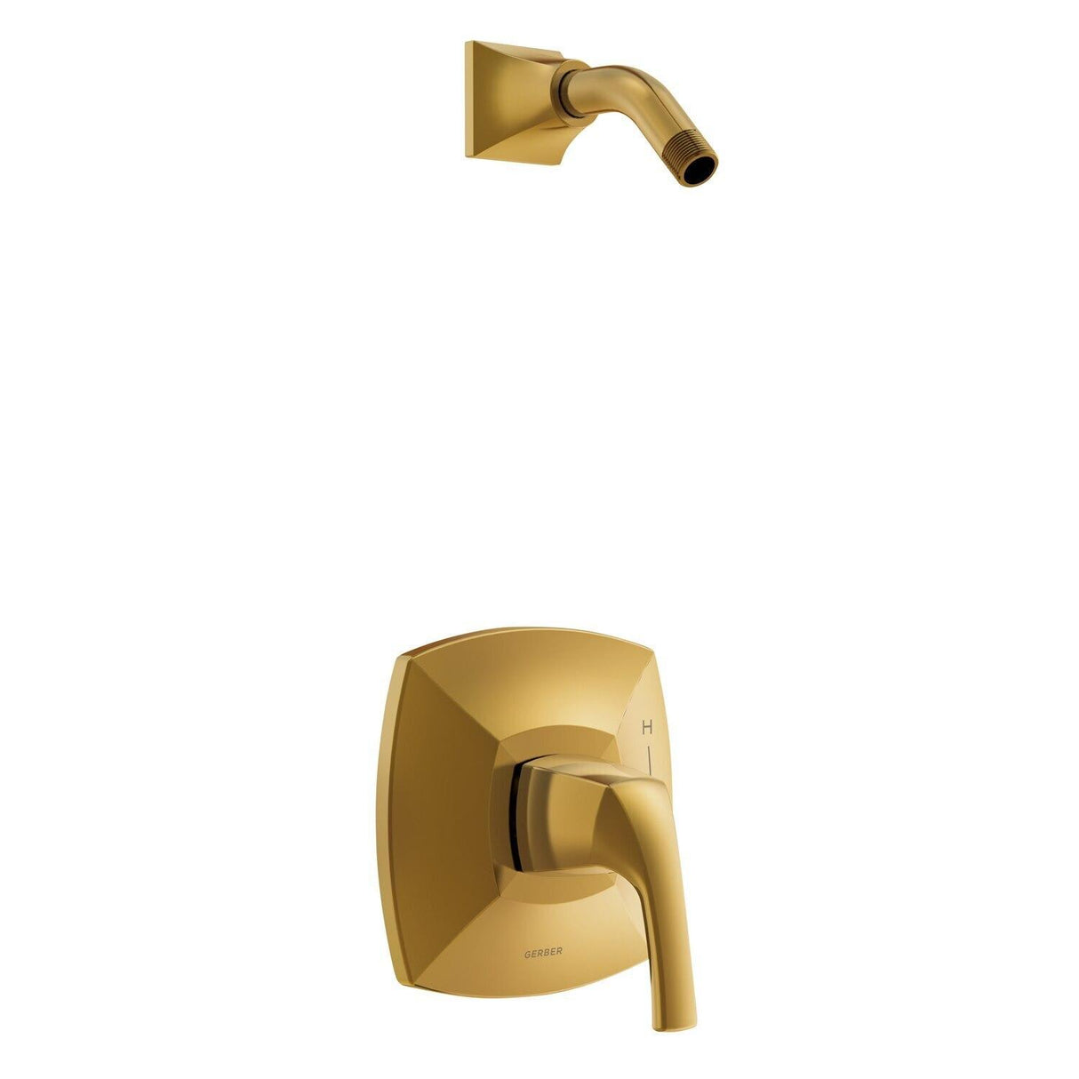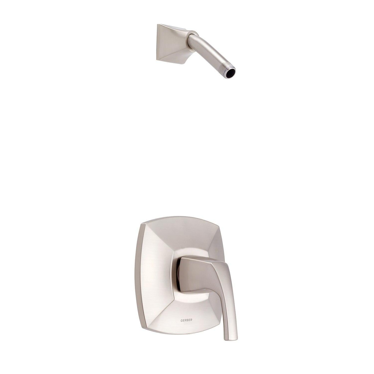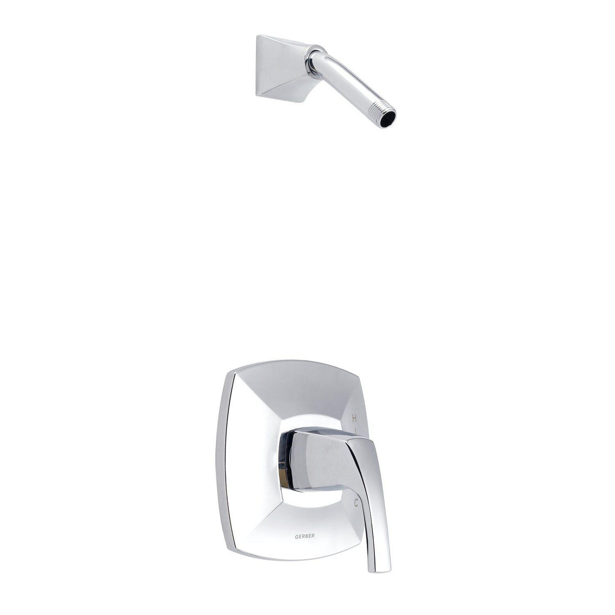 Carefully curated with a streamlined aesthetic, the new Vaughn™ bath collection features a dynamic and sophisticated design. The arched curves and smooth planes of the faucet body contrast the angled faucet handle, giving the faucet an effortless beauty. Inspired by fluidity and movement, its transitional styling integrates seamlessly with any bathroom. The tub and shower trim kits are fully compatible with the powerful Gerber® Treysta valve, the latest innovation in valve technology. Product Information Product Overview Shower Arm Length & Material: 6 Brass Shower ArmValve Type: Pressure BalanceBrand: Gerber Features Screw-Less Design for Fast and Easy InstallationCartridge Type: Includes Treysta Ceramic Disc Pressure Balance CartridgeIntegral Check Valve: Integral Check Valves in Cartridge Body to Prevent Cross-FlowWarranty: Limited lifetime Description The new Vaughn Collection trim includes the new Gerber Treysta Ceramic Disc Pressure Balance Cartridge. A Gerber Treysta rough-in valve body is required and is sold separately. Components Sold Separately Required: For Use with Gerber Treysta Rough-In Valves G00gs50 or G00gs52 SeriesSold Separately Optional: Finish Matched Deep Wall Extension Kit D113001 and Shallow Wall Extension Kit Ga663b11
