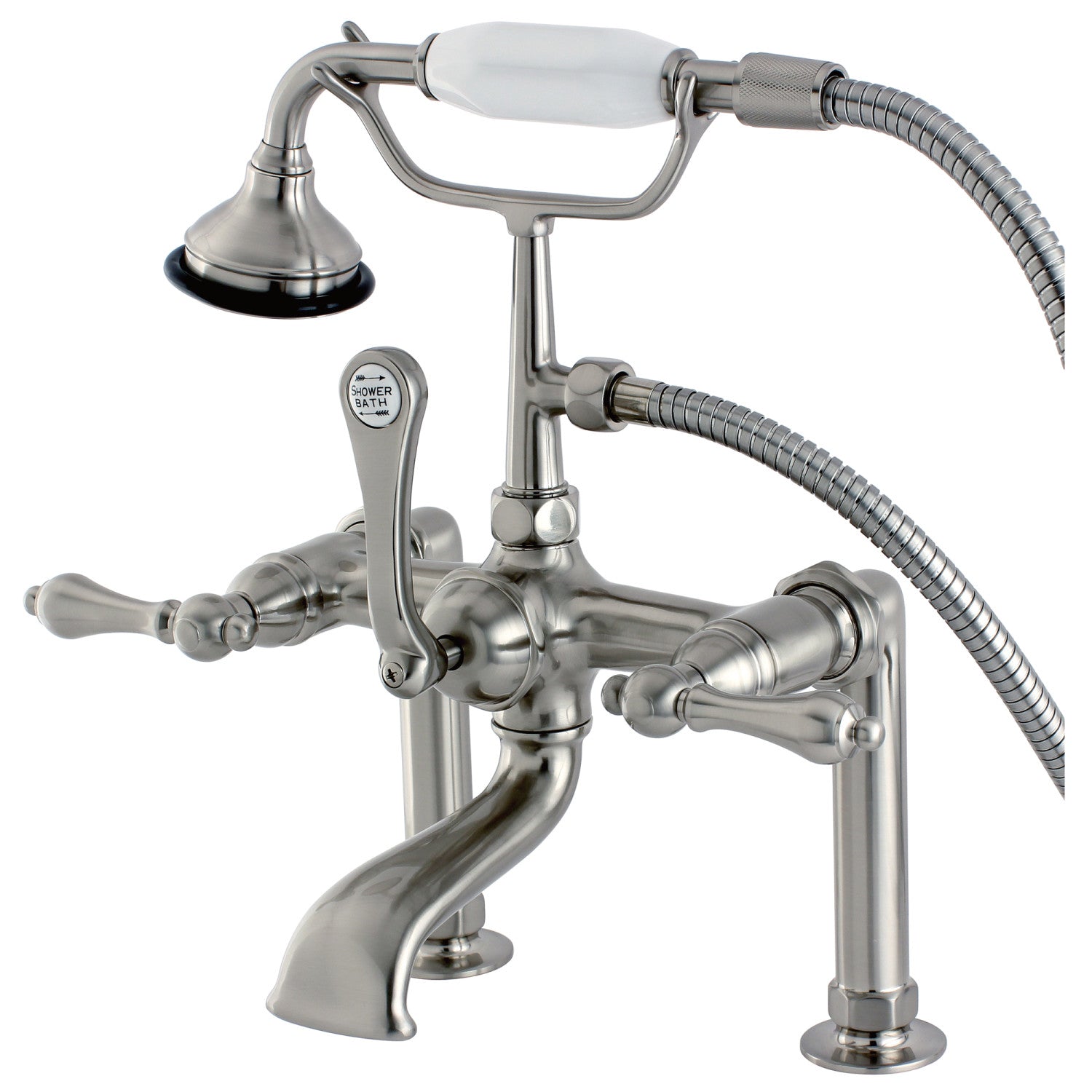Aqua Vintage AE103T8 Three-Handle 2-Hole Deck Mount Clawfoot Tub Faucet with Hand Shower, Brushed Nickel