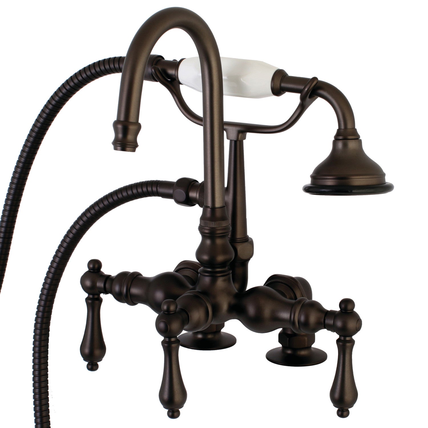 Aqua Vintage AE13T5 Three-Handle 2-Hole Deck Mount Clawfoot Tub Faucet with Hand Shower, Oil Rubbed Bronze