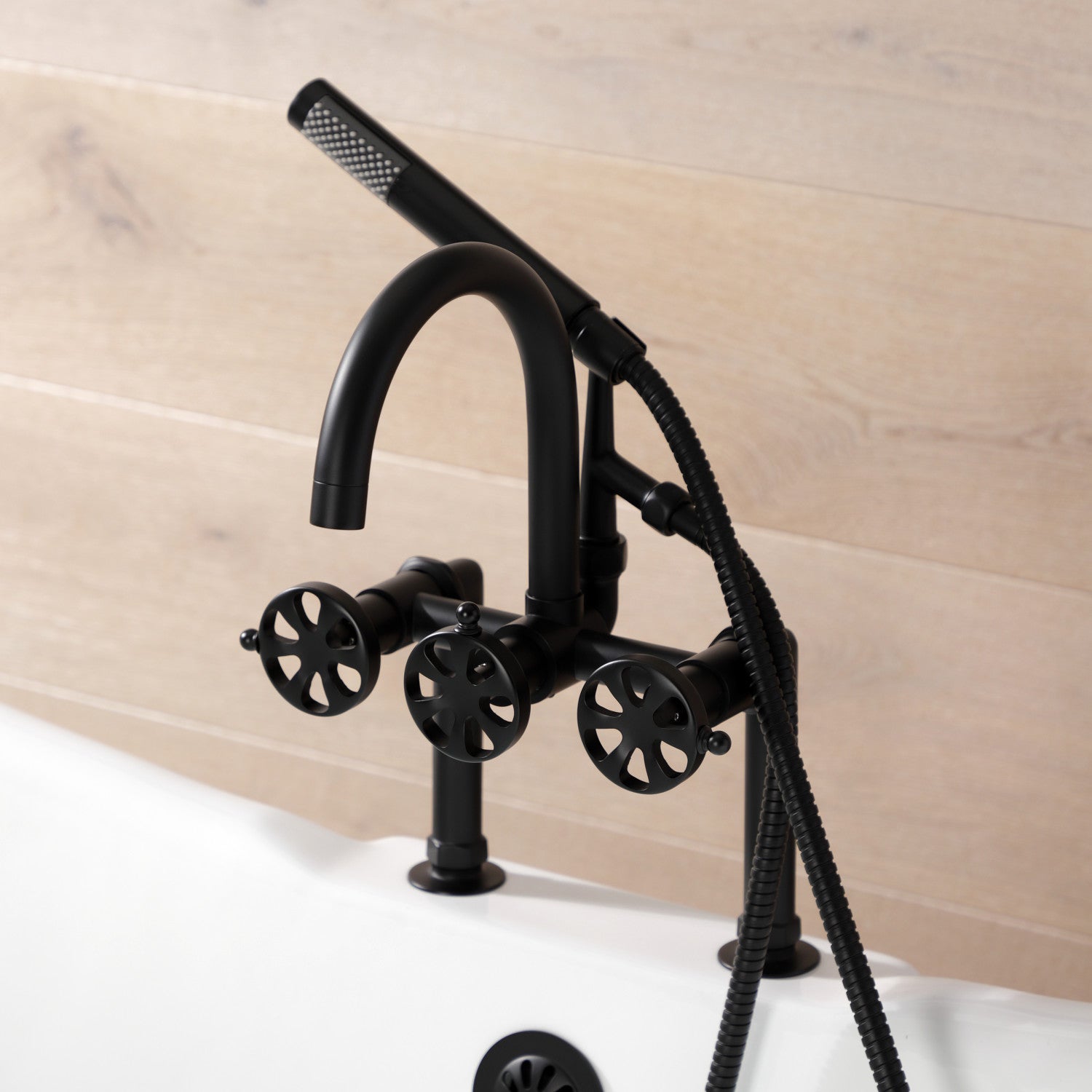 Belknap AE8100RX Three-Handle 2-Hole Deck Mount Clawfoot Tub Faucet with Hand Shower, Matte Black