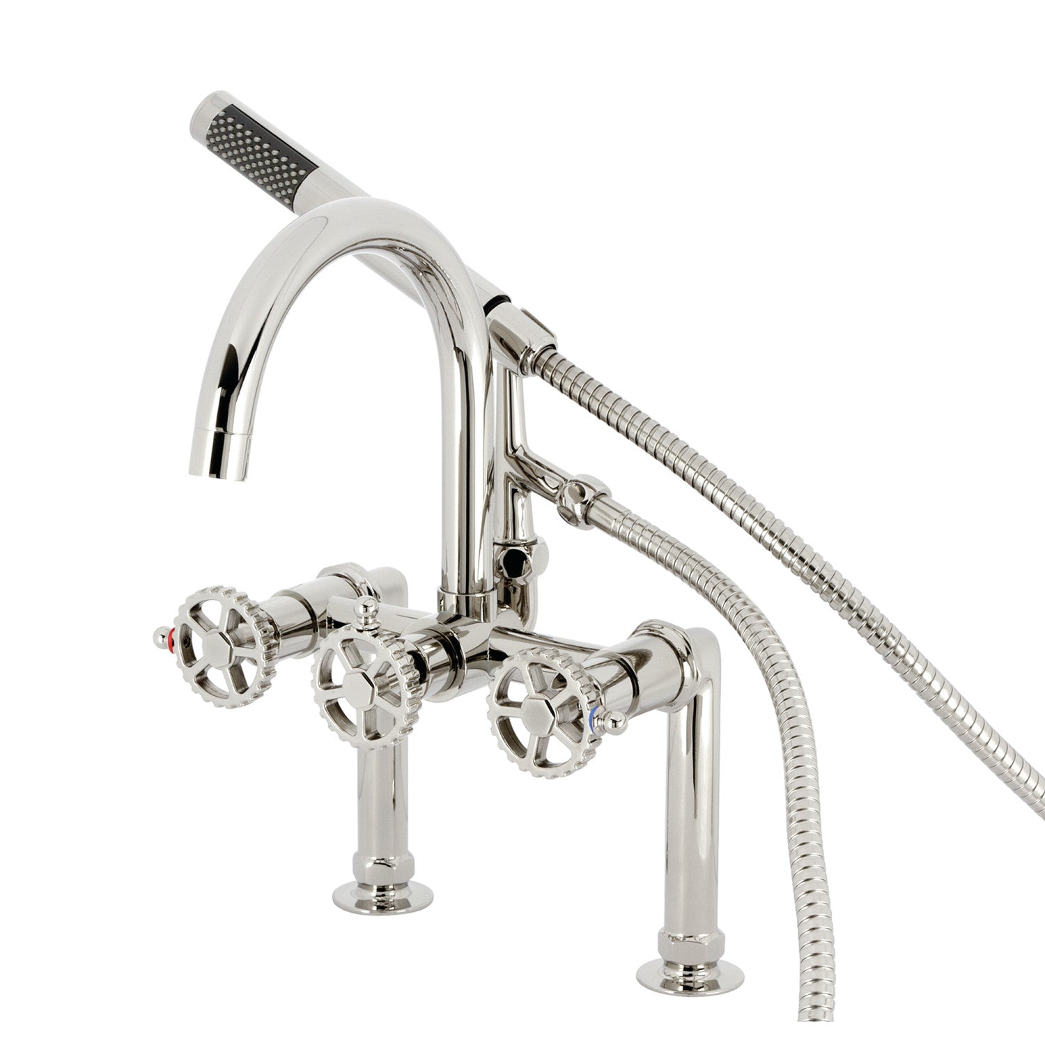 Fuller AE8106CG Three-Handle 2-Hole Deck Mount Clawfoot Tub Faucet with Hand Shower, Polished Nickel